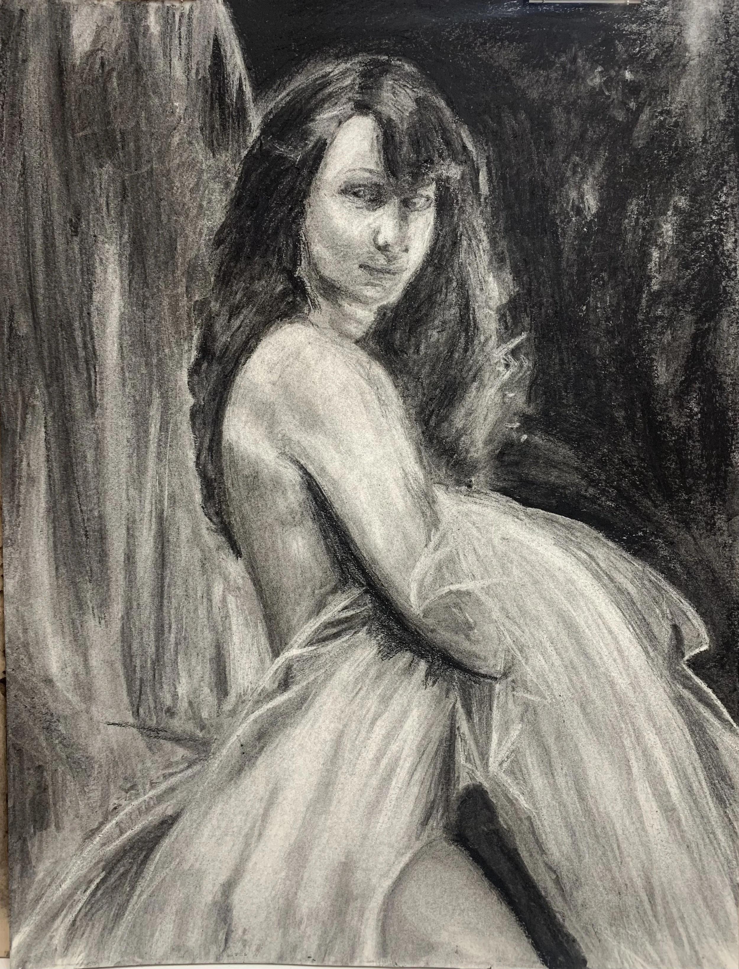 These drawings are done with either graphite or charcoal. I really love the use of values within those mediums.