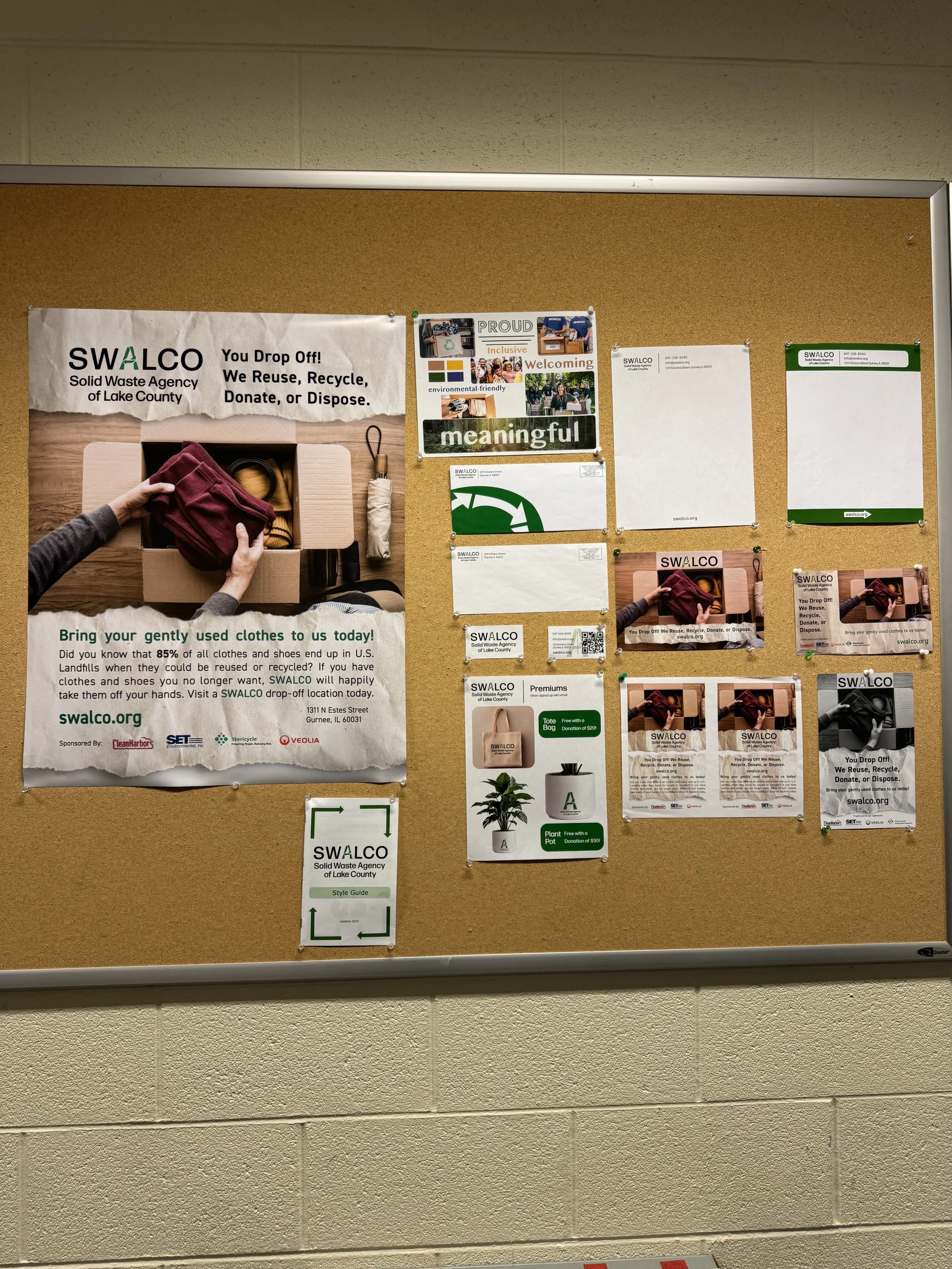 As a school project to choose a company and rebrand their look. I choose SWALCO (Solid Waste Agency of Lake County) a recycling center that helps to properly recycle, reuse. or properly dispose of non degradable items or objects that can be harmful in landfills for the environment - such as shoes, clothes, batteries, and cleaning chemicals as few examples.